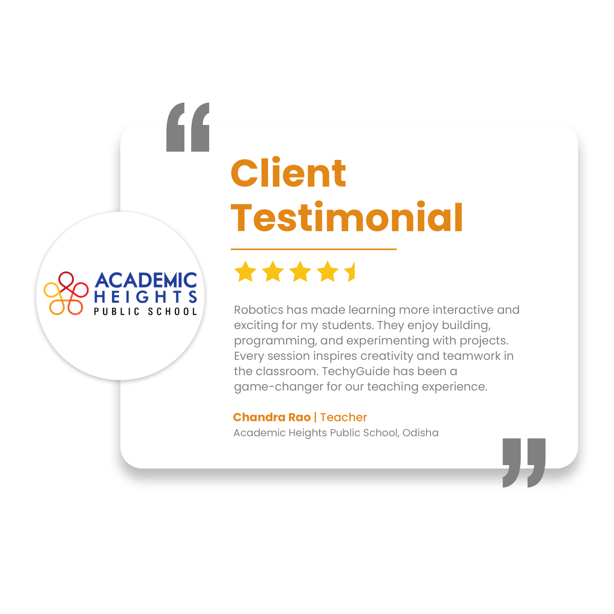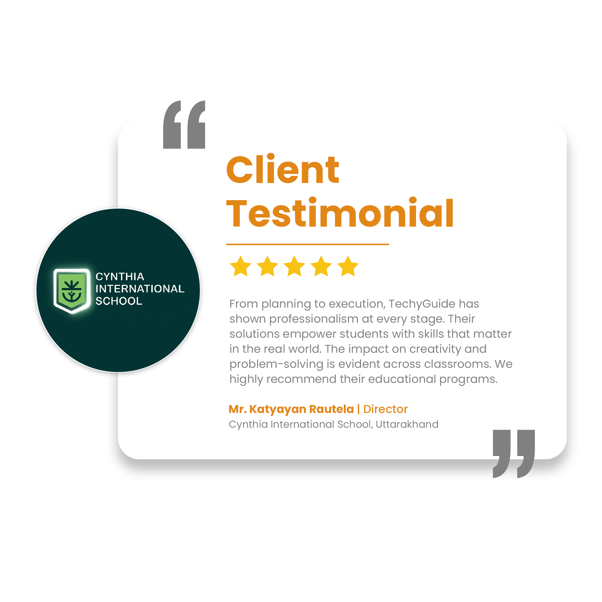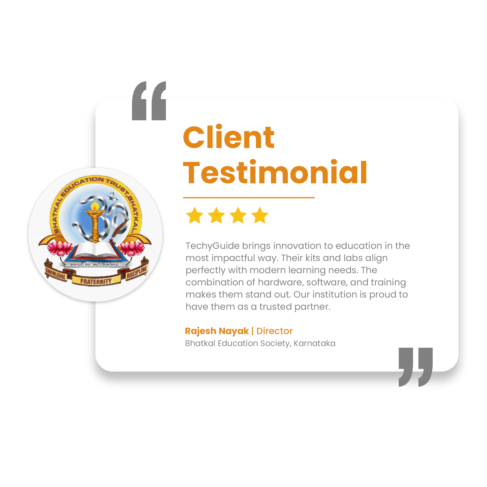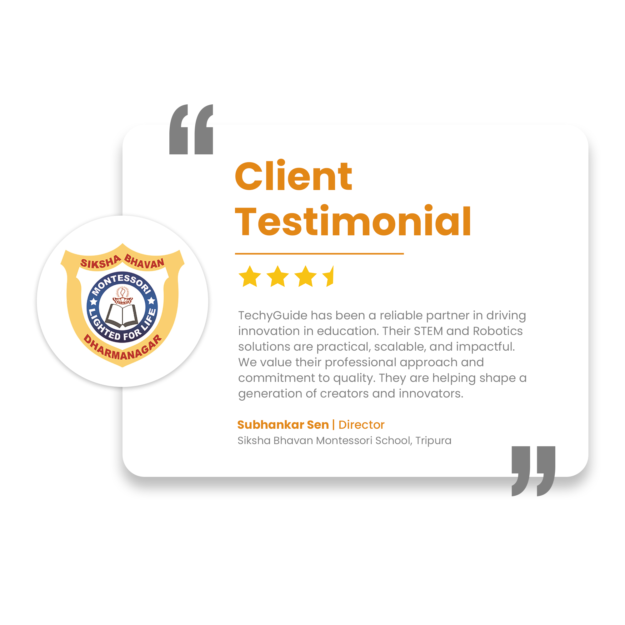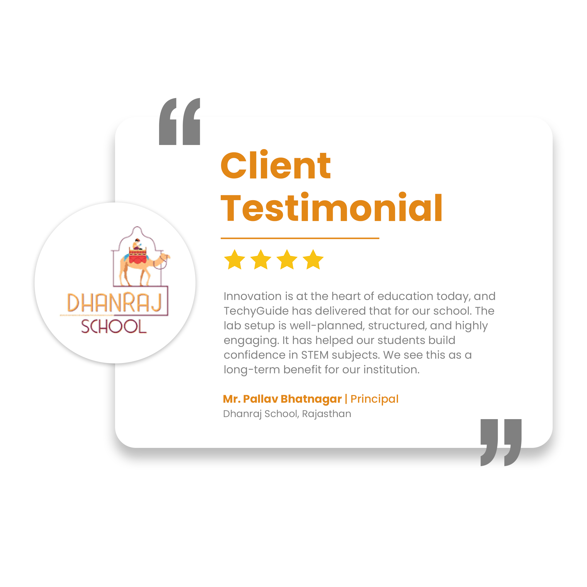 Through CSR-driven STEM Workshops, TechyGuide has engaged schools with innovative learning, equipped teachers with modern tools, and inspired students with practical exposure. These efforts are fostering educational empowerment and fueling the nation’s progress.